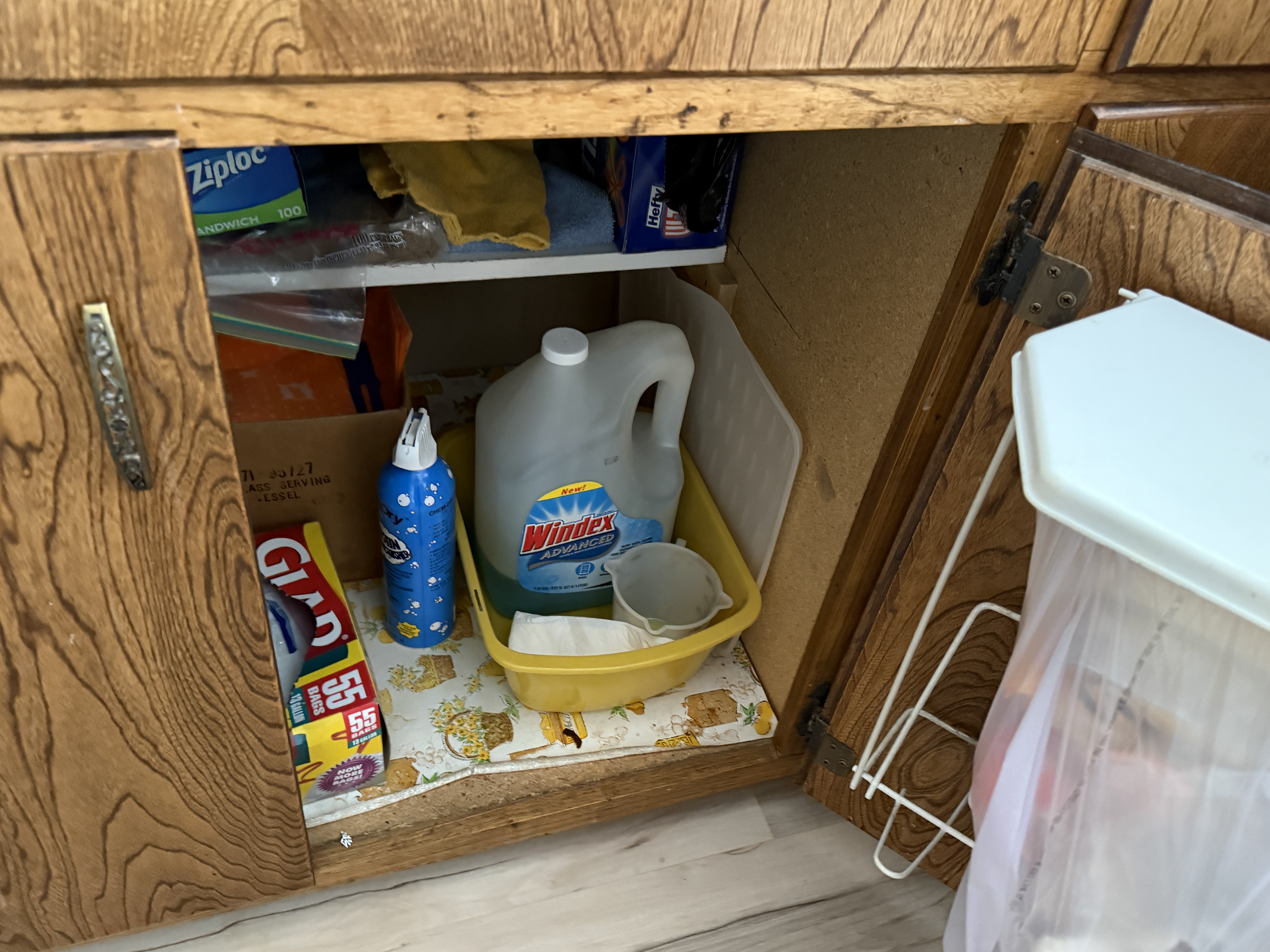 - Don’t use abrasive cleaner (Like Ajax) on tub or stainless steel sink. Special cleaners are under the sinks for this purpose.