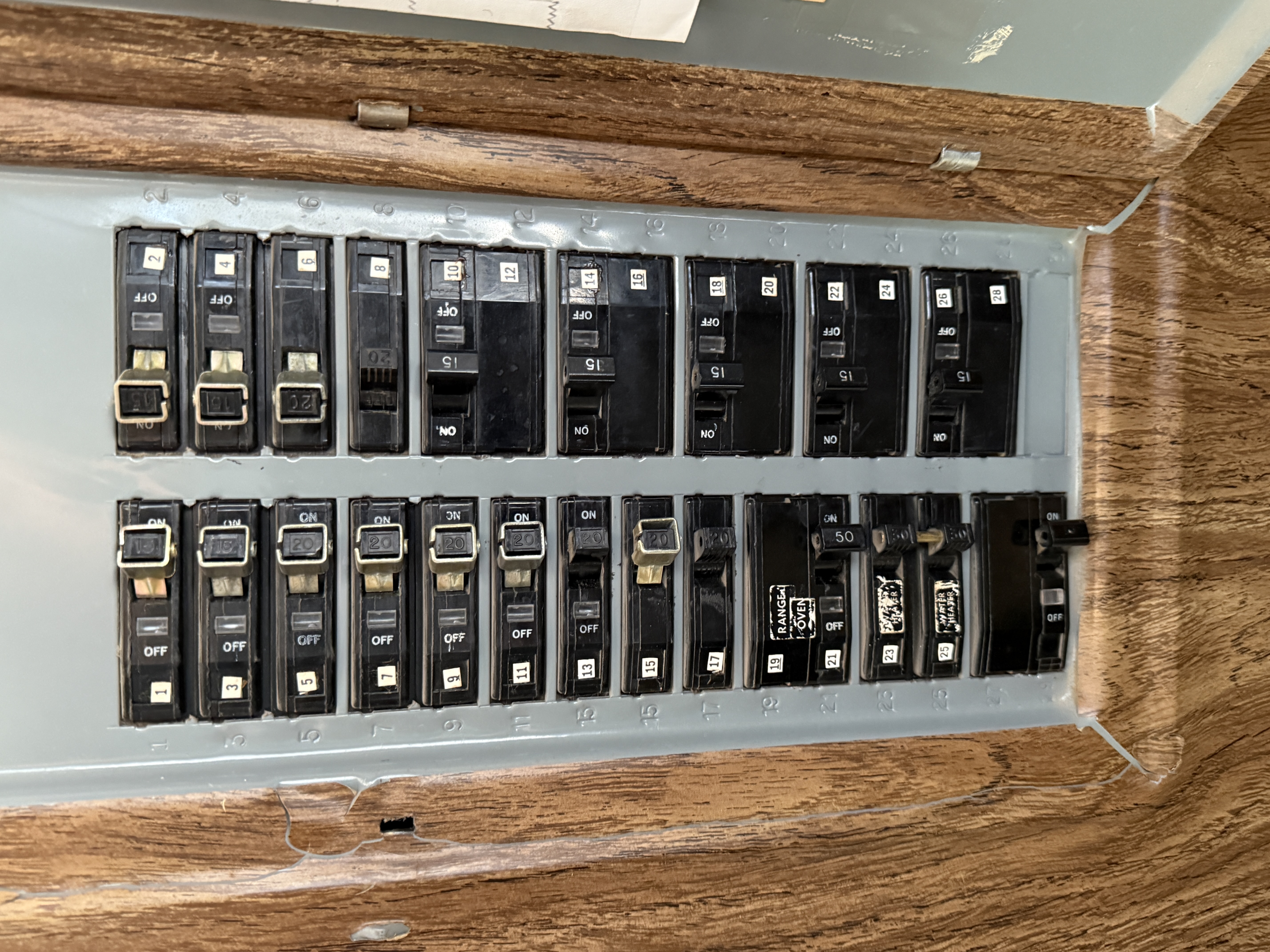 - Turn on all breakers on the left-hand side of panel (except those in locked position). It is important that you don’t tamper with the locked breakers.