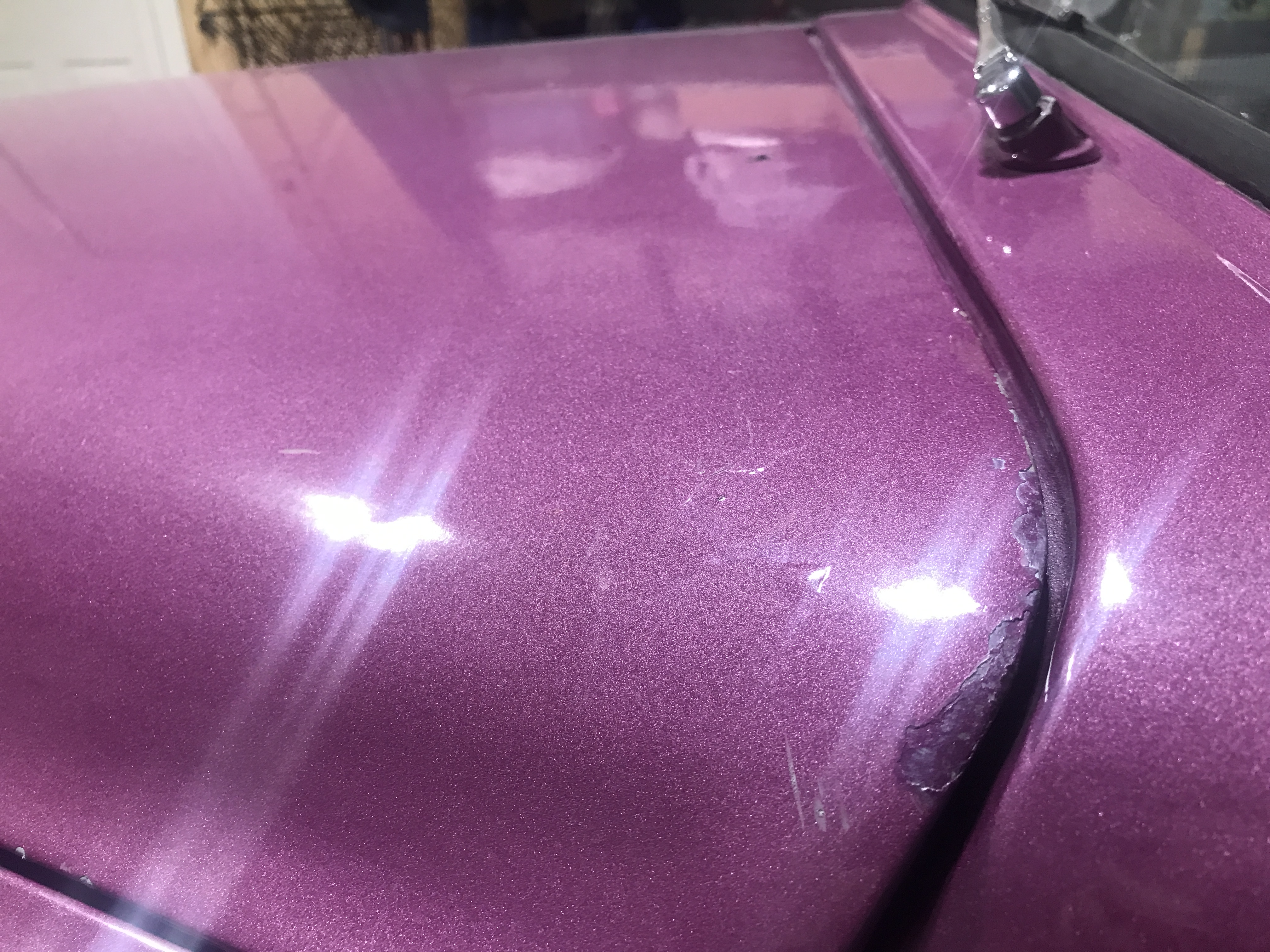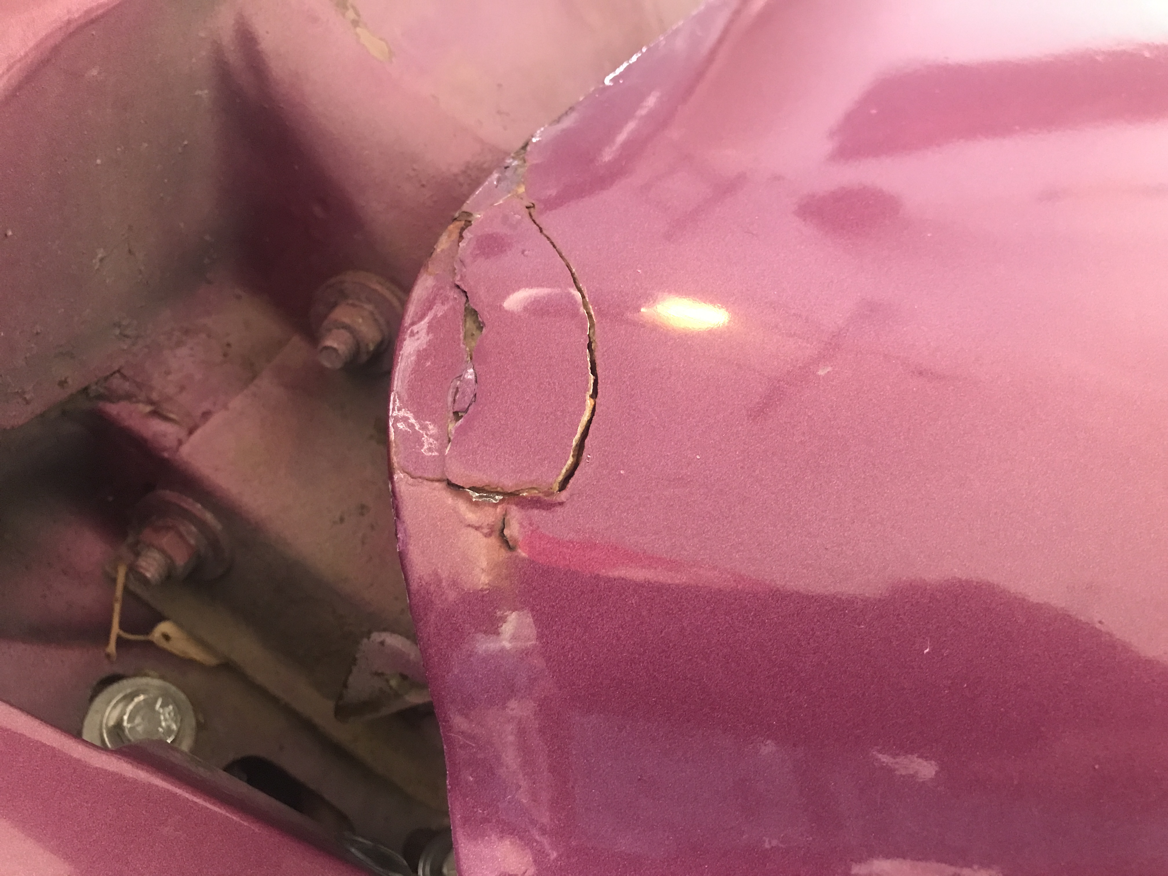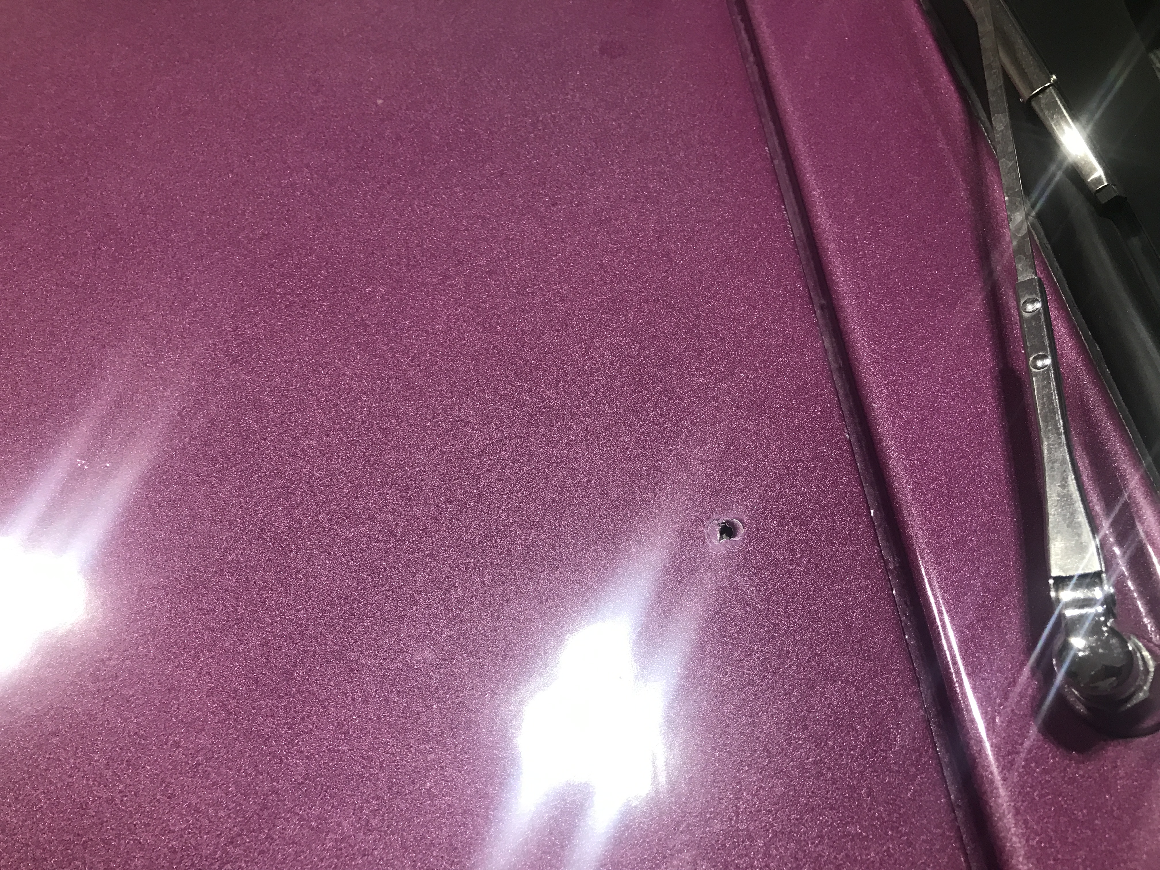 The hood has always been a small mess. There are multiple areas that need a just a tiny amount of help and one area that is very obvious. Of the worst is the rust spot near the passenger fender/windshield.