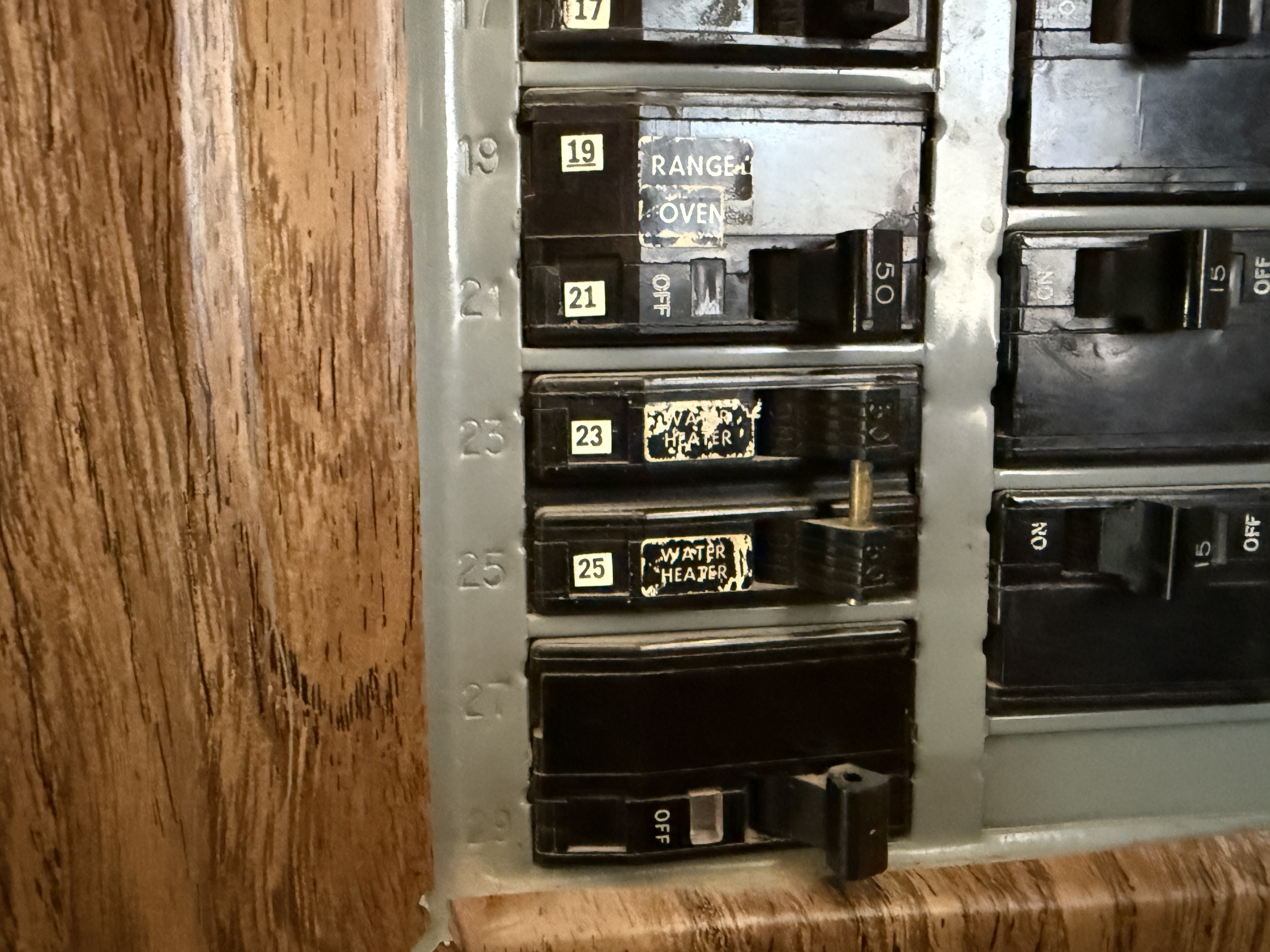 - Turn hot water heater OFF (Breakers #23 & #25)