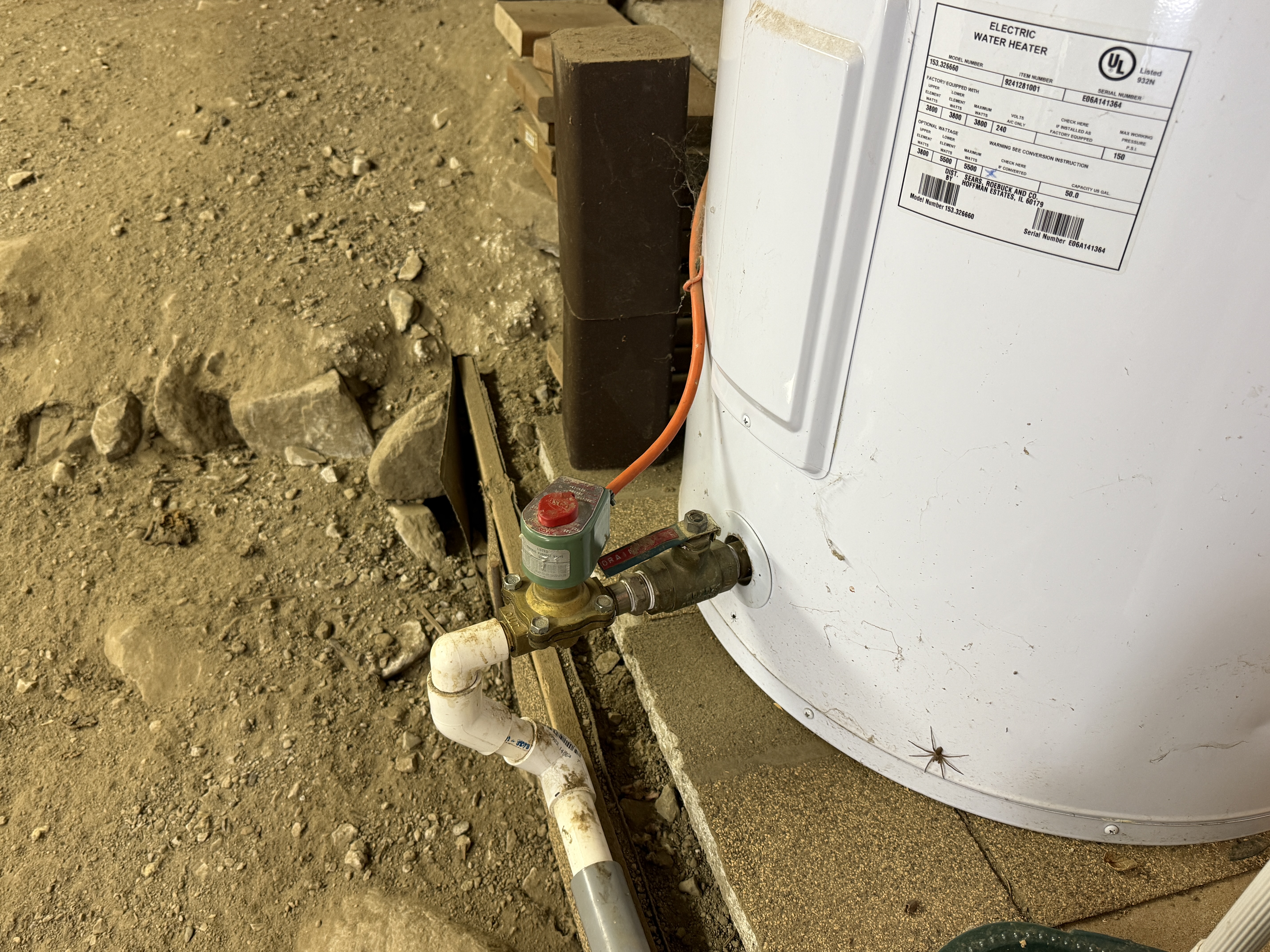 Note: this also closes the selonoid valve on the water heater drain line. This valve has in the past leaked by due to debris stuck between the rubber seal and seat area. Listen for water running in the basement or off the back of the deck. IF the valve is leaking by close the manual vavle between the heater and selonoid valve.
