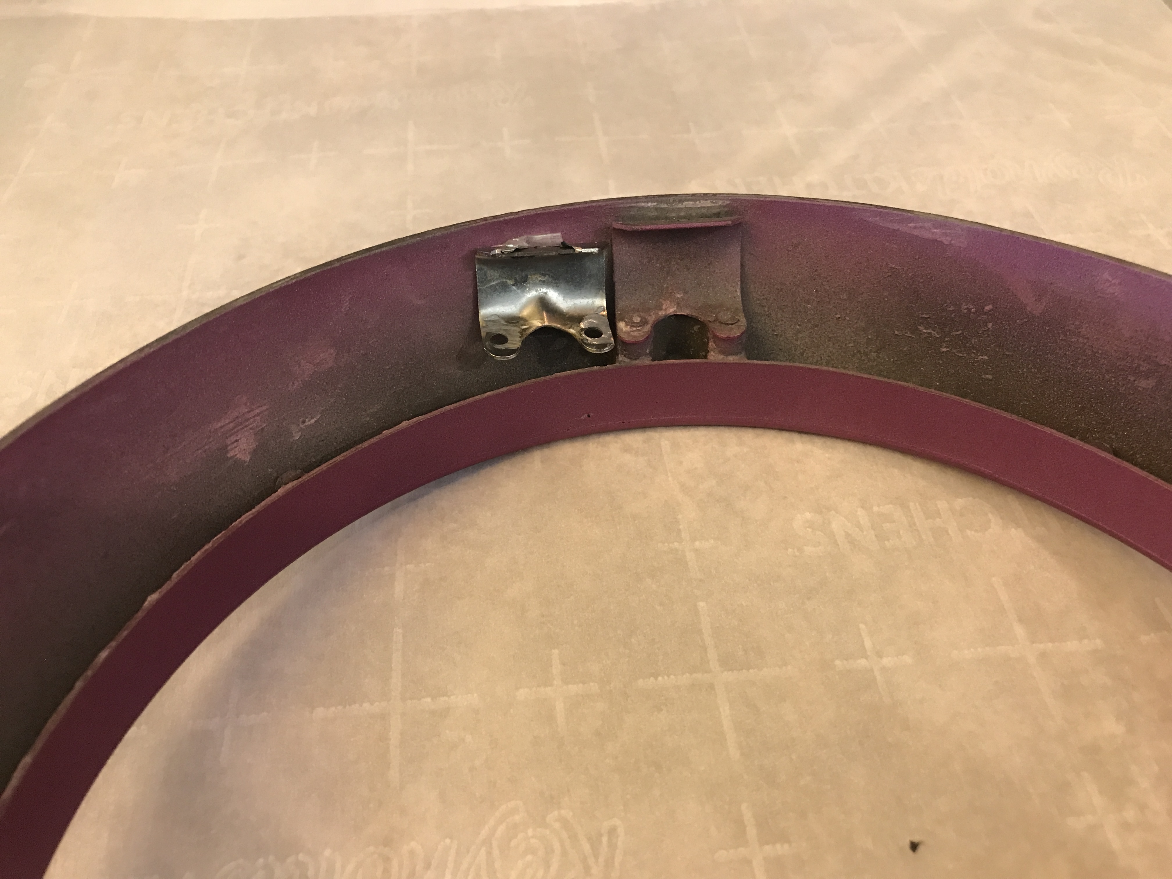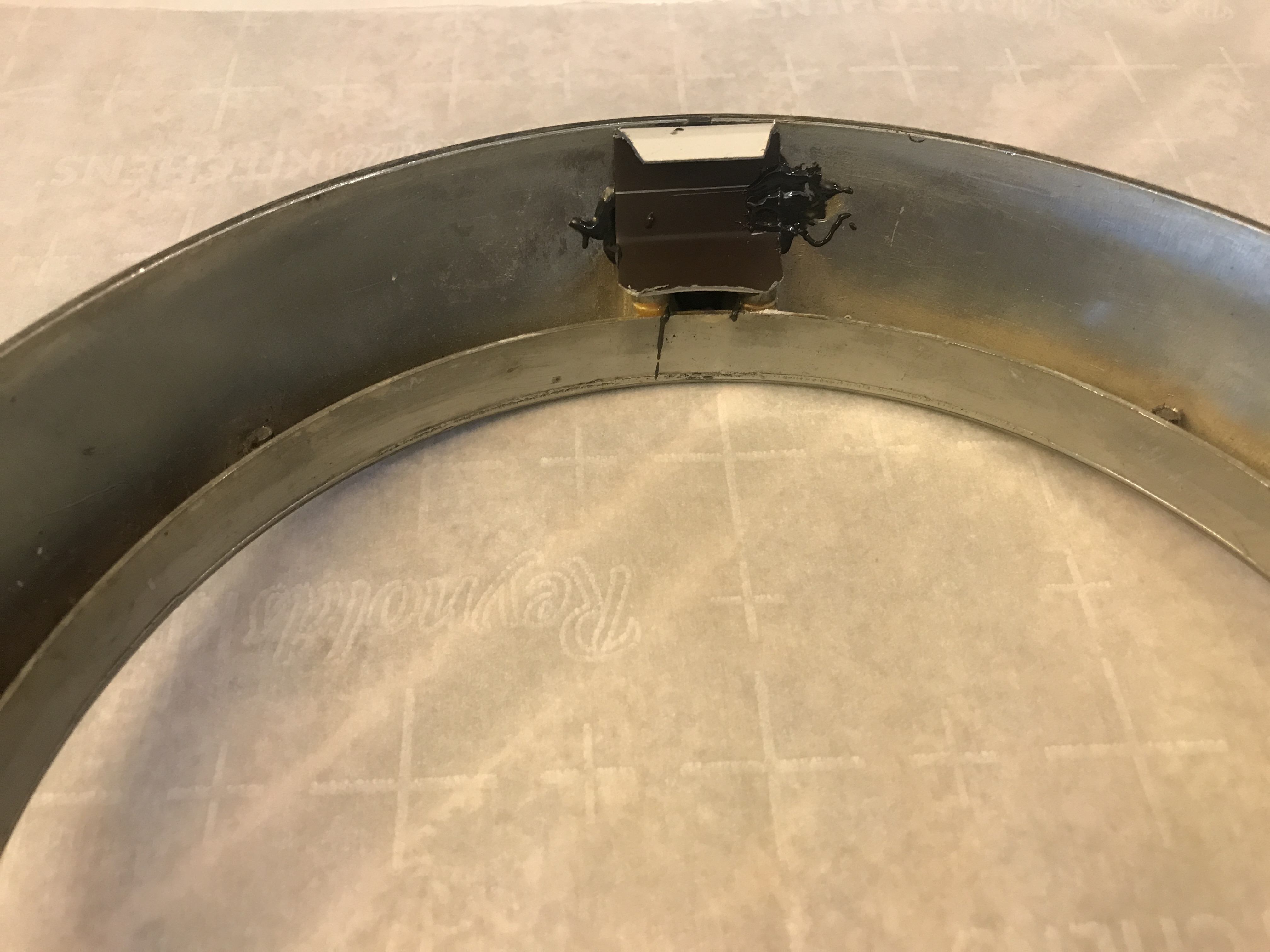 We removed the tabs from the chrome bezels and began the process of making new tabs. You can see the difference between the tab from the painted bezels, which do fit, and the reach of the removed tab.