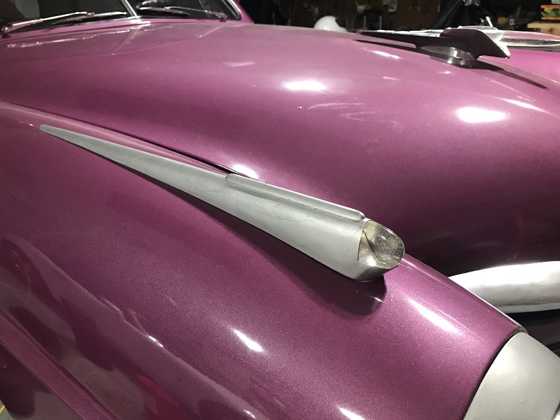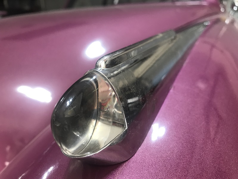 Of course most of the parts can NOT be simply ordered so we where off to Ebay. We have a few sellers saved and there just happened to be a New Old Stock set of 50' fender spears. (thank you Milt) They looked amazing but only had one of the jewels. We installed these with the better of our jewels and thought, well that looks like %^&*. The new 'perfect' jewel makes ours look like junk.