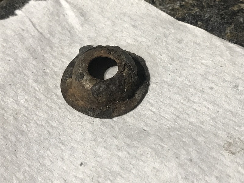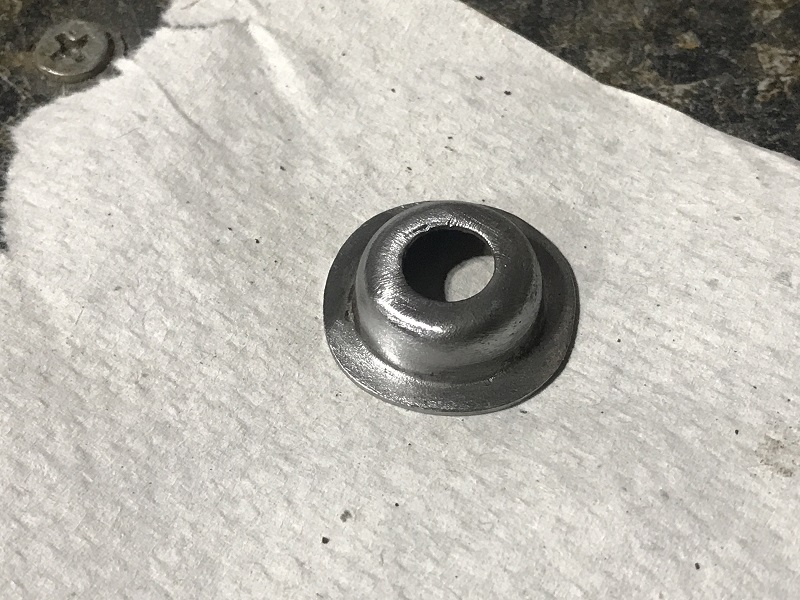 One of those 'hidden' things was the ordering/use of the specially cup shaped washers for mounting the spears. These washers provide a wide and deep washer that holds the spears down to the fenders. We ordered 3 replacement washers - here is one of ours before and after cleaning.