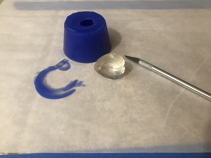 As we sat there looking at the now very noticable low quality jewel, and the extra unused original jewel, we realized we could cast our own. We had left over casting resin from the Horn Button project and now we just needed to make a mold. Poking around on Amazon this time we found a two part silicone mold kit and we were in business.