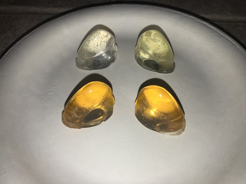 This however caused some inspiration. Since the previous owner added LED lights behind the jewels they are now part of the turn signals. We could make two jewels that are amber in color and they would work even better. So it was off to Amazon again for some resin dye of which we used 13 drops.