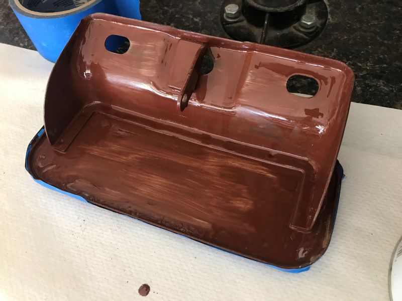 Once the blank is installed paint everything with "Rusty Metal Primer" (actual product name):